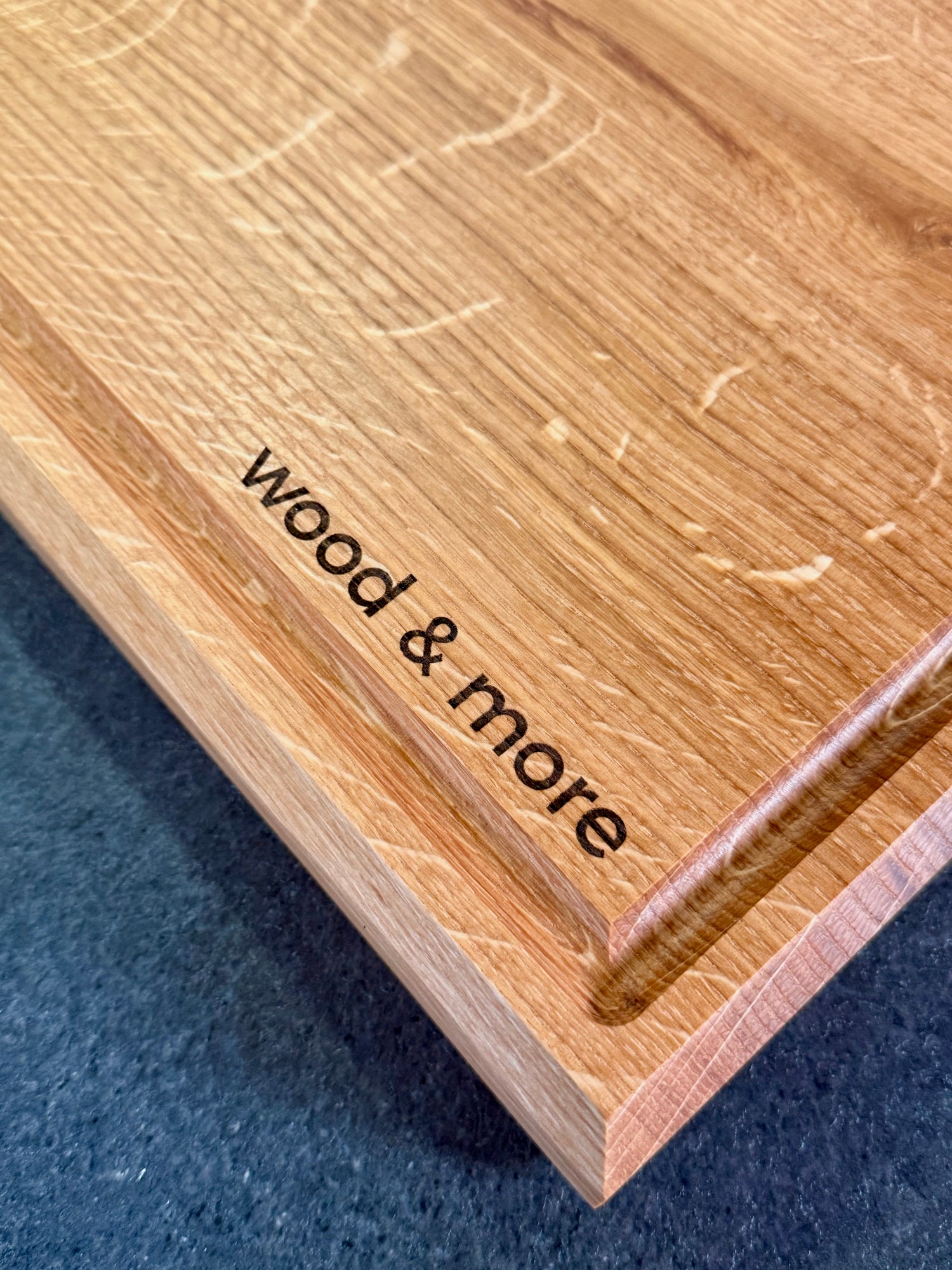 Auch funktional machen unsere Bretter den Unterschied: Eine präzise gefräste Saftrille, beidseitige Nutzbarkeit und je nach Modell praktische Griffmulden oder Edelstahl-Elemente sorgen dafür, dass das Brett zum echten Werkzeug wird – in der Küche, am Grill oder auf dem Buffet.