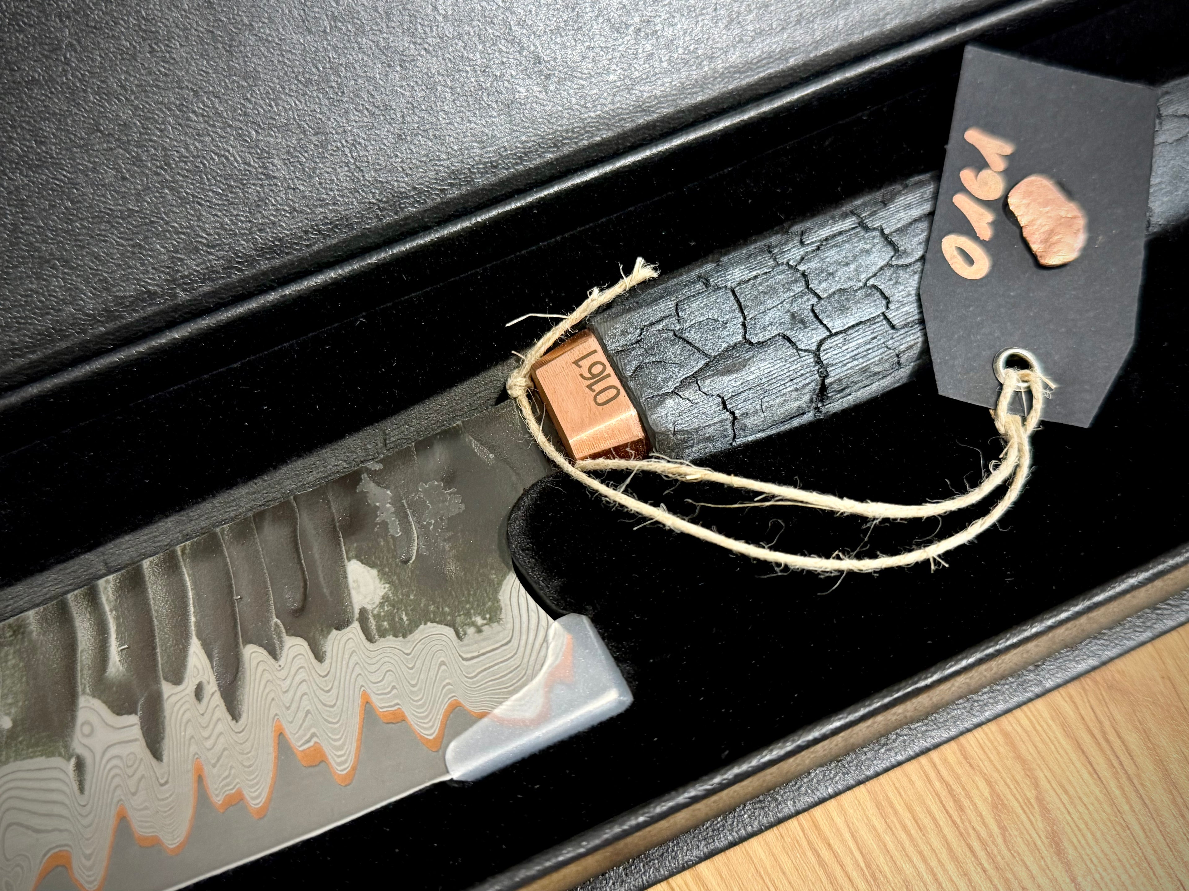 Vom feinen Nakiri bis zum kraftvollen Brotmesser – die Flamewood-Serie verbindet Handwerkskunst mit High-End-Materialien: 67 Lagen Damaststahl, VG10-Stahlkern, 62 HRC Härte und der unverwechselbare Flamewood-Griff.