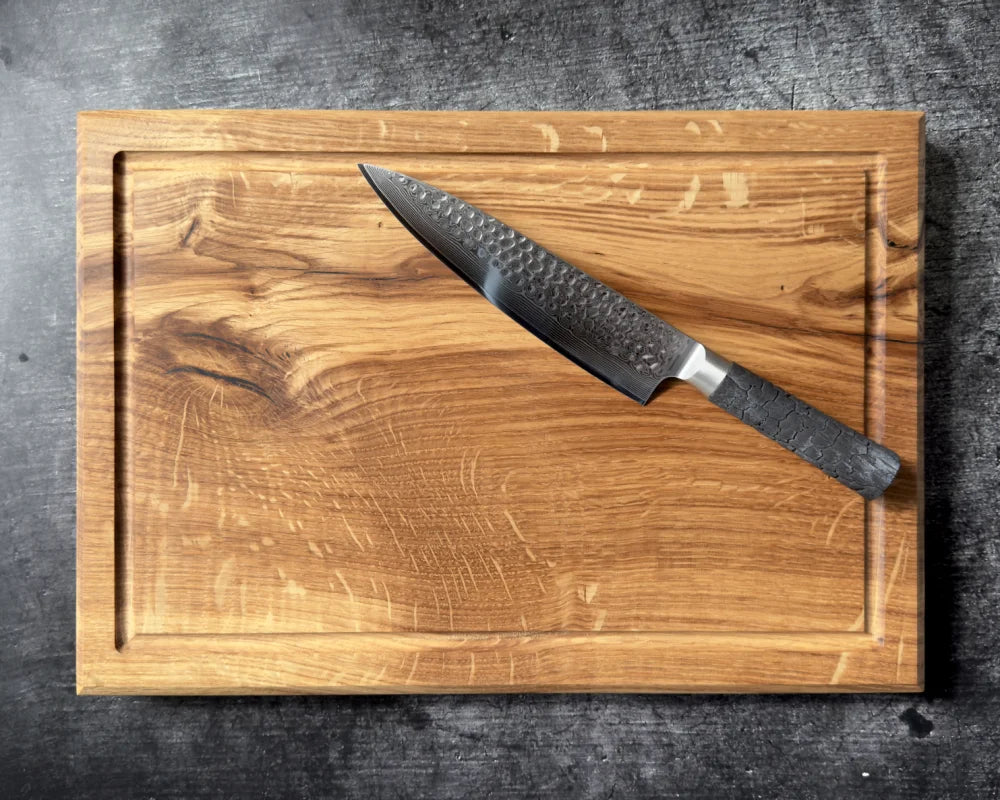 • Solid oak cutting board – 4 cm thick, handmade, usable on both sides