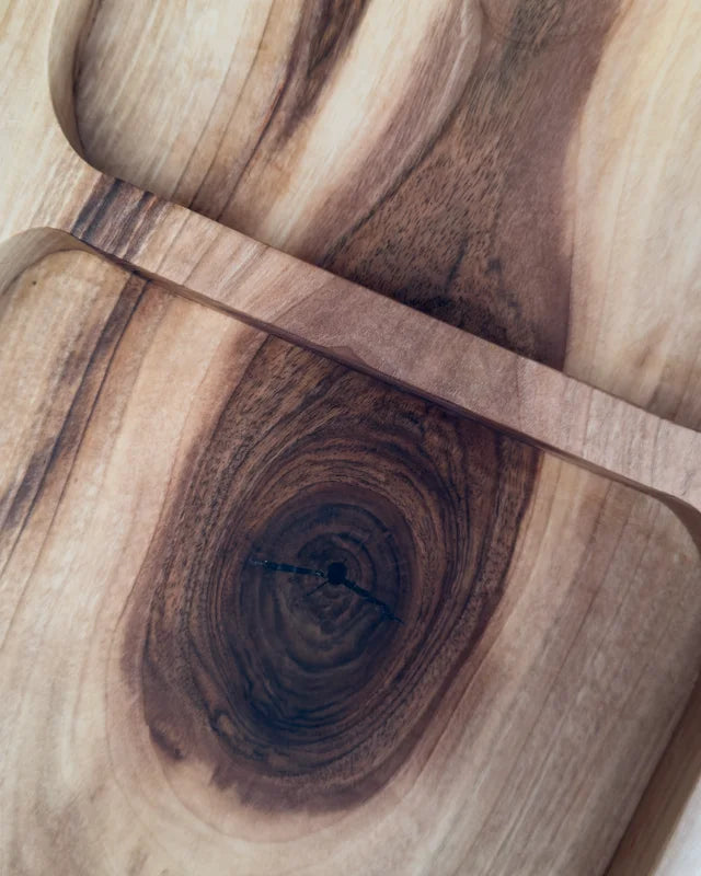 Hard, dense woods like oak, walnut, ash, or elm are ideal for cutting boards. They are cut-resistant, antibacterial, and gentle on the blade. Oak is especially popular for BBQs, while walnut impresses with its elegant appearance.