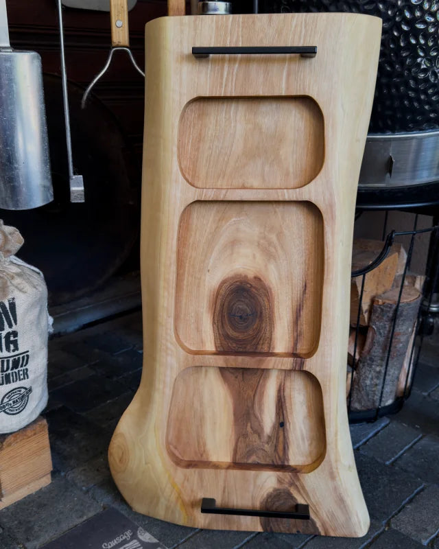 The velvety surface, the fascinating grain, and the precise workmanship make it the highlight of every BBQ session – and a serving board that leaves an impression.