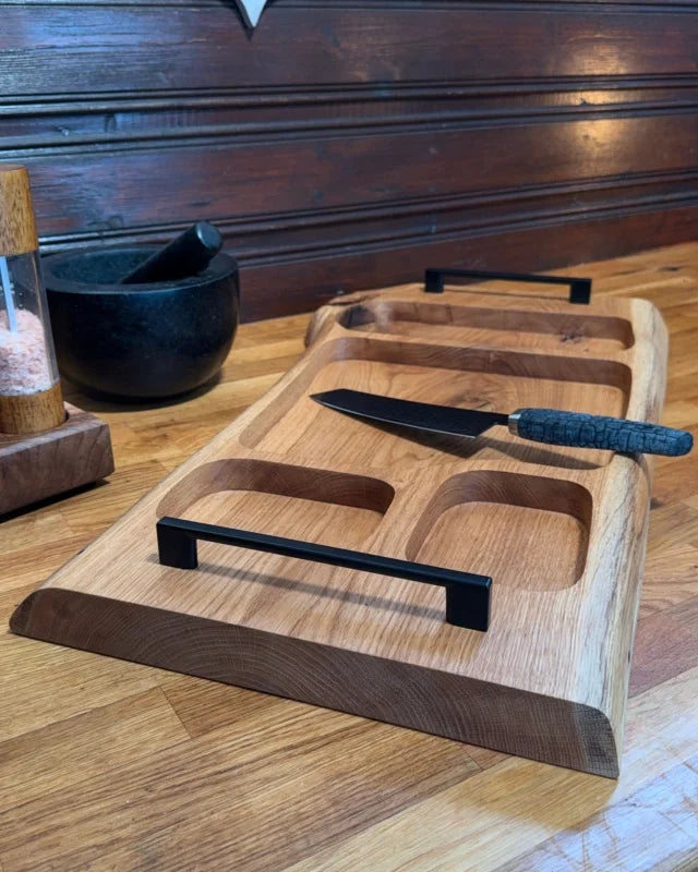 Vom Käsebrett für zwei über die Antipasti-Runde mit Freunden bis hin zum vollständigen BBQ-Menü: Unsere Servierbretter setzen jeden Gang in Szene. Aus massivem Vollholz, in echter Handarbeit geformt, fein geschliffen und 2× geölt – so leuchten Maserung und Farbspiel, die Oberfläche liegt seidig und sicher in der Hand. Beidseitig nutzbar, je nach Modell mit Fräsungen für Dips & Jus, Griffmulden oder Metallgriffen: robust, pflegeleicht und bereit für Vorspeise, Hauptgang und Dessert – am Grill wie am Tisch.